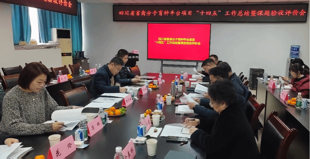 12月14日下午,由我校李明洲教授主持的四川省畜禽育种攻关项目——“主要畜禽分子育种平台”工作总结暨课题验收评价会在成都校区顺利召开。四川省农业科学院原副院长杨武云研究员,我校发展规划与学科建设处处长尹华东教授,科技处副处长杜俊波教授,动物营养研究所党委副书记冯琳教授,动物营养研究所花伦副教授莅临指导。课题负责人与课题骨干成员及参与研究工作的部分研究生40余人参加会议。会议由项目首席专家、动物科技学院李明洲教授主持。
