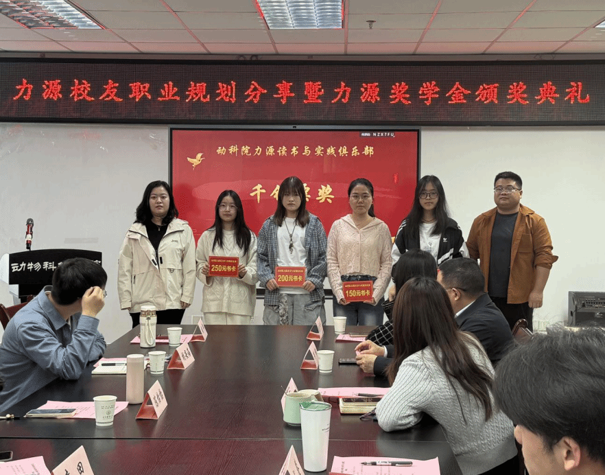 本次颁奖典礼共设立了多个奖项,包括力源突出贡献奖、黄金屋奖、千钟粟奖等。力源集团胡安海、陈怡怡、胡烨、袁田,学院何桦书记、舒正悦老师分别为获奖人员颁发学生干部奖学金,现场气氛热烈。