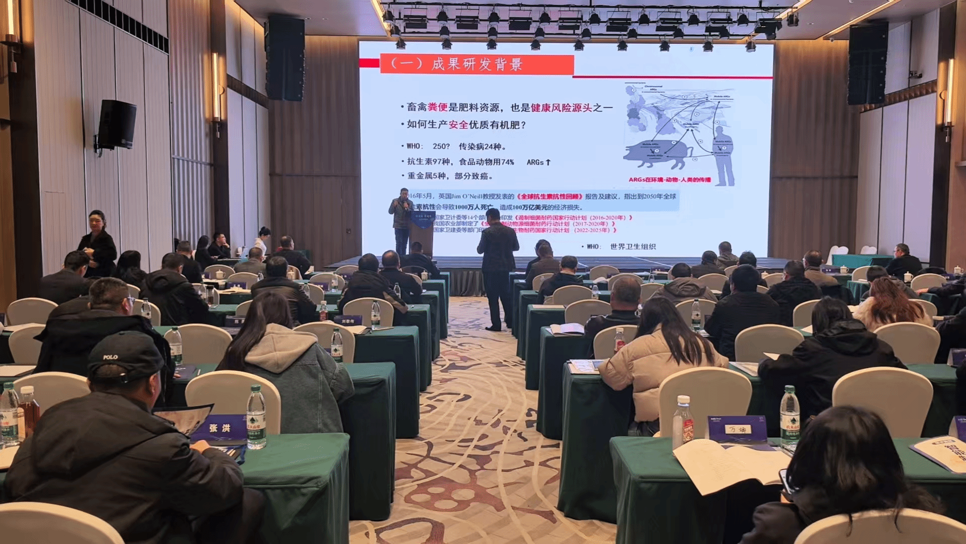 白林教授在成果展示环节介绍,该技术围绕畜禽粪污的资源化与无害化目标,形成了一套涵盖源头减排、高温发酵、菌剂筛选与工艺优化的综合解决方案。团队从不同环境中分离筛选出多株耐高温菌株,部分菌株已获国家发明专利授权,为实现高效堆肥提供了关键微生物资源。在工艺方面,研发的自热超高温堆肥技术能使堆体温度持续保持在70℃以上达15天,有效去除抗生素及耐药基因,显著提升无害化水平。同时,通过结合蚯蚓处理与功能菌剂添加,进一步提升了有机肥的品质与安全性,降低了环境风险。该成果已在省内多家农业企业实现应用示范,建成多条堆肥生产线,为区域种养结合与生态农业建设提供了可靠的技术支撑。