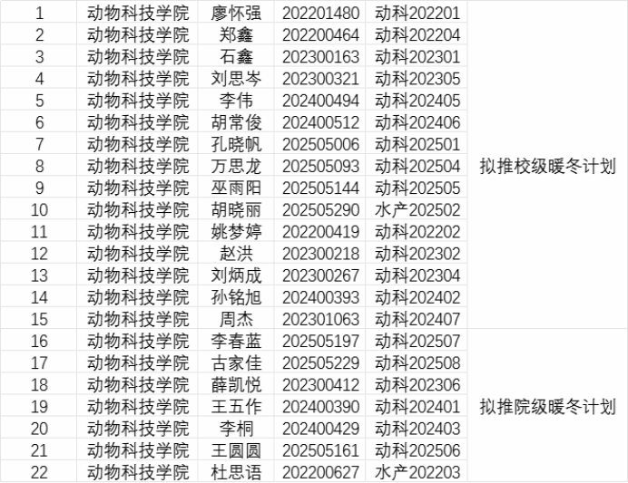 经学生本人申请、学院资格审查、本科生奖励与资助评审工作小组评审,现将学院2024年"暖冬行动"活动推荐参评人员予以公示。