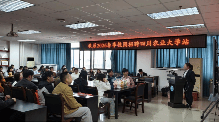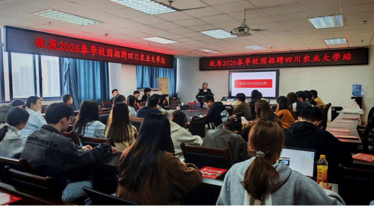 为扩大企业人才招聘与深化校企交流,牧原集团于2026年3月27日下午在四川农业大学动物科技学院举办2026届校园招聘宣讲会暨校友座谈会。本次活动面向动物科学、畜牧学等相关专业,吸引众多2026届毕业生到场参与,现场气氛热烈。