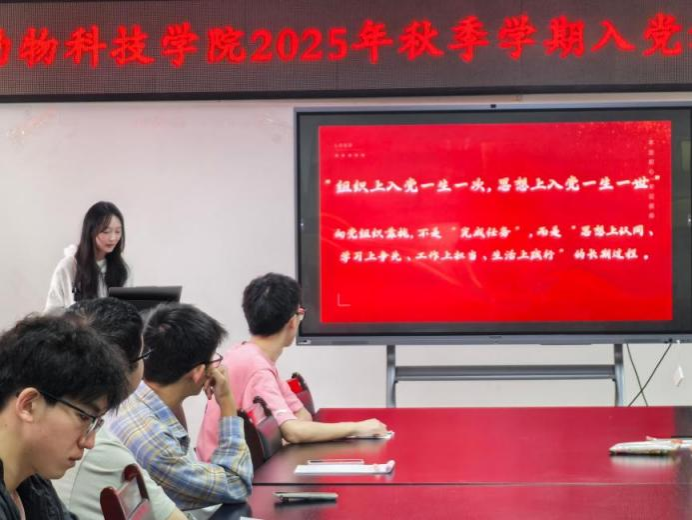 动物科学专业本科生第二党支部书记陈茜同志分享道:一个人的力量是有限的,但一群有组织有纪律的中国共产党党员能迸发出无穷的力量。学员们不仅要做到“思想红”,更要做到“行动强”,争取以实际行动早日加入中国共产党。