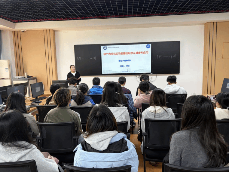 邓娟老师聚焦猪产肉性状形成的分子机制,分享了功能基因组学在猪育种中的应用前景。她用深入浅出的语言,讲解了如何借助高通量测序、基因编辑等现代技术手段,解析影响产肉效率与肉质性状的关键基因,让同学们对“从基因到表型”的完整研究链条有了更加清晰的认识。