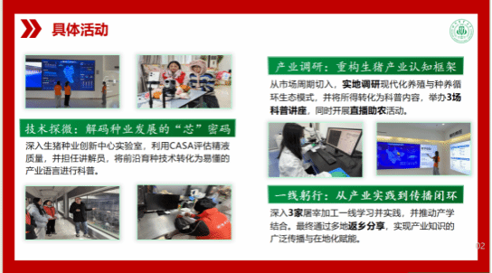 会议伊始,实践部谢佳洋对本次寒假社会实践的整体情况作总结汇报。据悉,全院共有700余名动科学子踊跃投身实践,组建团队72支,开展个人实践项目50余项。谢佳洋充分肯定了同学们在实践过程中展现出的责任担当与青春风采,并系统梳理了活动亮点与特色成果。本次总结会分别邀请到“川猪领航·智育良猪暖冬助农先锋”与“新兴兔产业校企共研——助力区域性乡村振兴实践”的两个团队代表分享实践经验与心得。“川猪领航·智育良猪暖冬助农先锋”团队徐泽菲同学分享了实践中的收获感悟及实践成果,并表示:“从课堂到猪场才明白,养好猪不光要靠理论,更要细心观察、动手实操。”