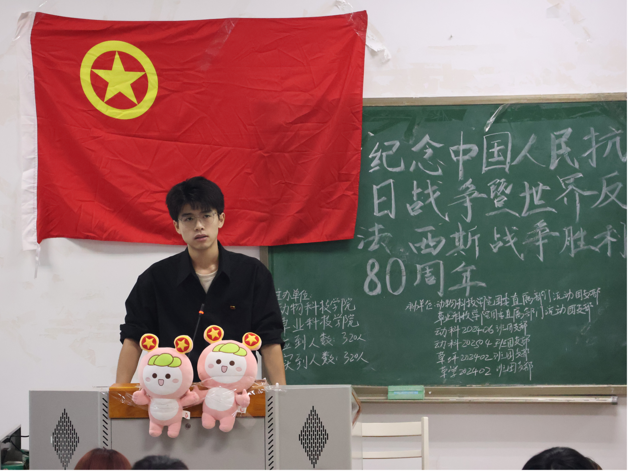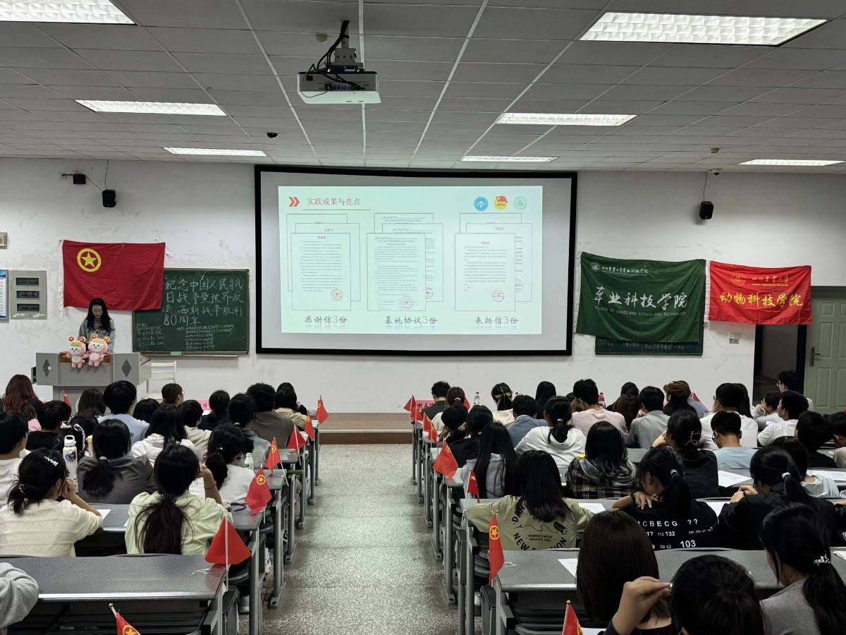 为深入学习习近平总书记在纪念中国人民抗日战争暨世界反法西斯战争胜利80周年大会上的重要讲话精神,传承红色基因、强化团纪意识、践行强农使命,动物科技学院团委直属部门流动班团支部、草业科技学院团委直属部门流动班团支部、动科202406班团支部、动科202504班团支部、草坪202402班团支部、草学202402班团支部联合开展“纪念中国人民抗日战争暨世界反法西斯战争胜利80周年”主题九至十月示范性班团活动。本次示范性班团活动分为四个篇章展开,吸引300余名同学踊跃参与。