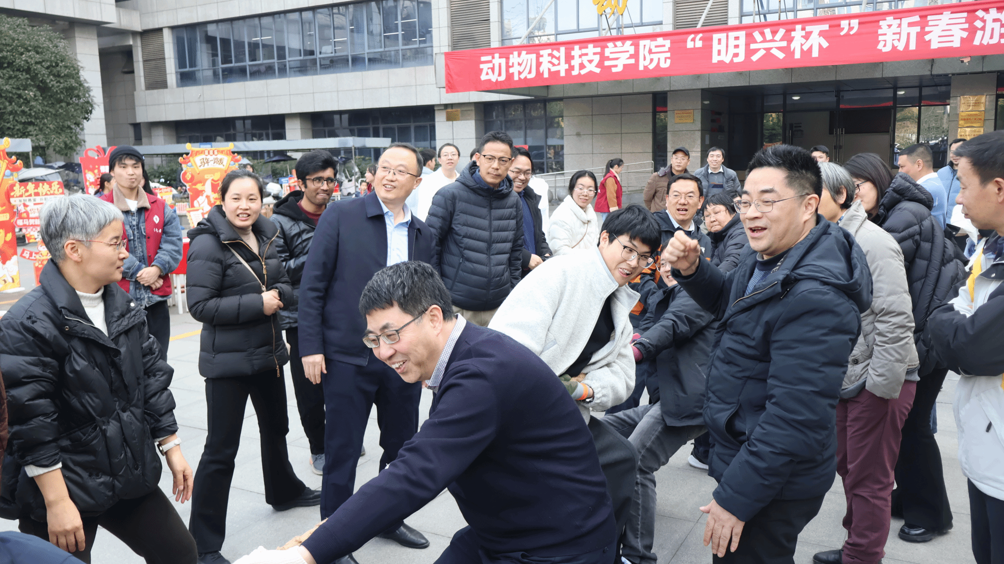 为喜迎新年、增进师生交流,营造和谐奋进的学院氛围,1月14日下午,学院工会在第六教学楼门口举办了“明兴杯”迎新年游园活动。学院70余名教职工踊跃参与,现场欢声笑语不断,洋溢着喜庆热烈的节日气氛。活动由院党委副书记、纪委书记杨雪主持。