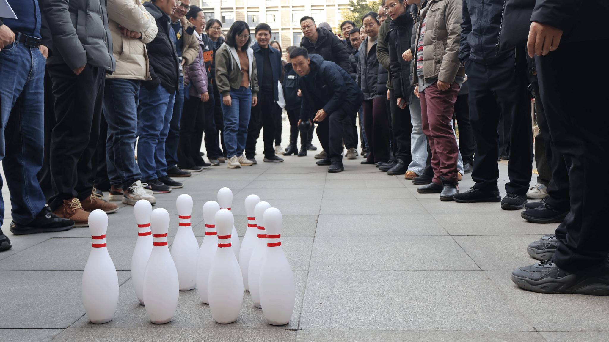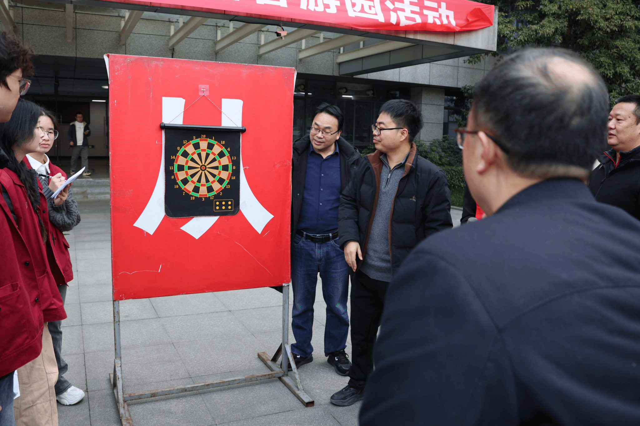 在拔河比赛中,各队齐心协力,口号震天;合力建塔项目考验着团队的默契与稳定;趣味套大鹅和趣味保龄球则带来了阵阵欢笑;趣味三子棋融合了脑力与体力,现场节奏紧张活泼;飞镖投掷与投掷套圈项目同样吸引了大量教师一试身手。每一个项目现场都围满了加油助威的观众,掌声、喝彩声此起彼伏。