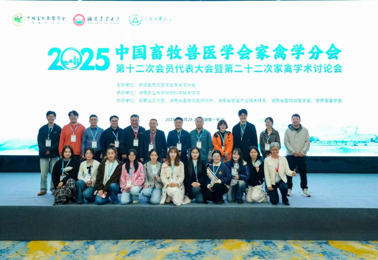 10月24日至27日,中国畜牧兽医学会家禽学分会第十二次会员代表大会暨第二十二次家禽学术讨论会在湖南长沙成功召开。会议吸引了来自国内外高校、科研院所和企业的700余位专家学者、研究人员、企业代表和学生参会。我校动物科技学院、生命科学学院、动物营养研究所3个单位的20余名师生出席会议,并围绕家禽遗传育种、饲料营养、智慧养殖及疫病防控等领域作专题报告和海报展示,向全国同行汇报了我校在家禽科学研究与技术创新方面的最新研究成果。